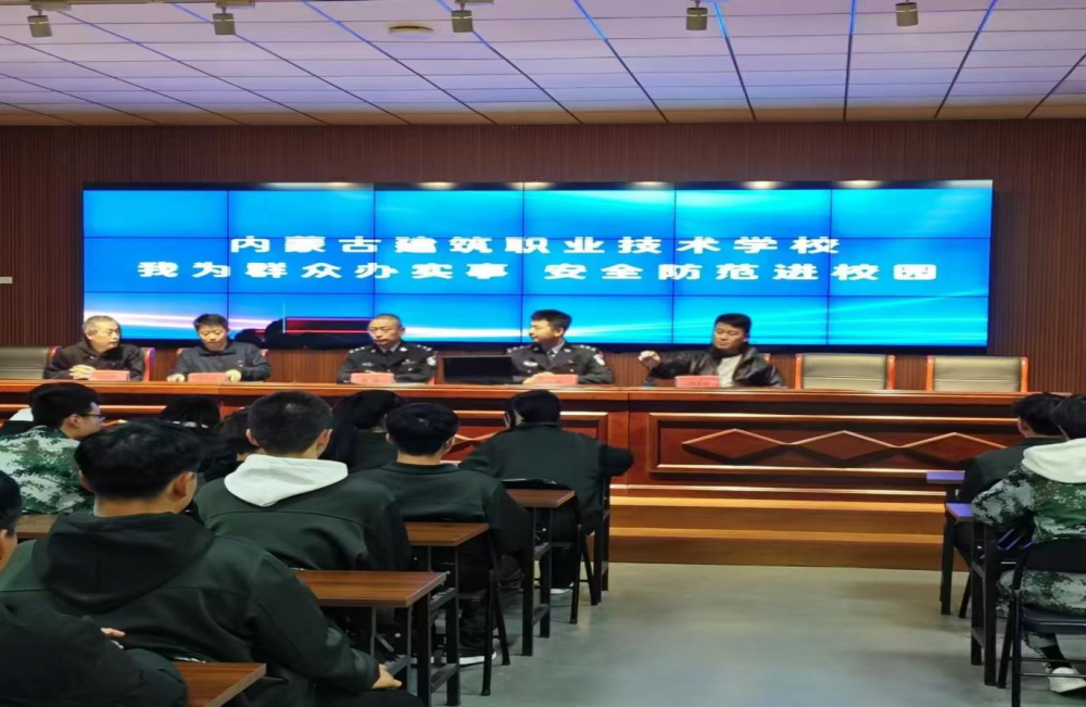 为学习贯彻落实习近平总书记重要指示批示精神,全面推进“知法、学法、懂法、用法”活动,为深入推进青少年法治教育,增强青少年的法治观念和自我保护意识,2024年10月31日下午3点,呼和浩特市新城公安分局智侦中心主任崔强、民警孟聪、新东方刘宇恒受邀赴我校以“我为群众办实事,安全防范进校园”为主题开展法治安全宣讲,学校法人白亚楠、学工处处长宋成胜、安保处处长荆志方、安保处副处长刘仲德及学校300名师生参加宣讲。